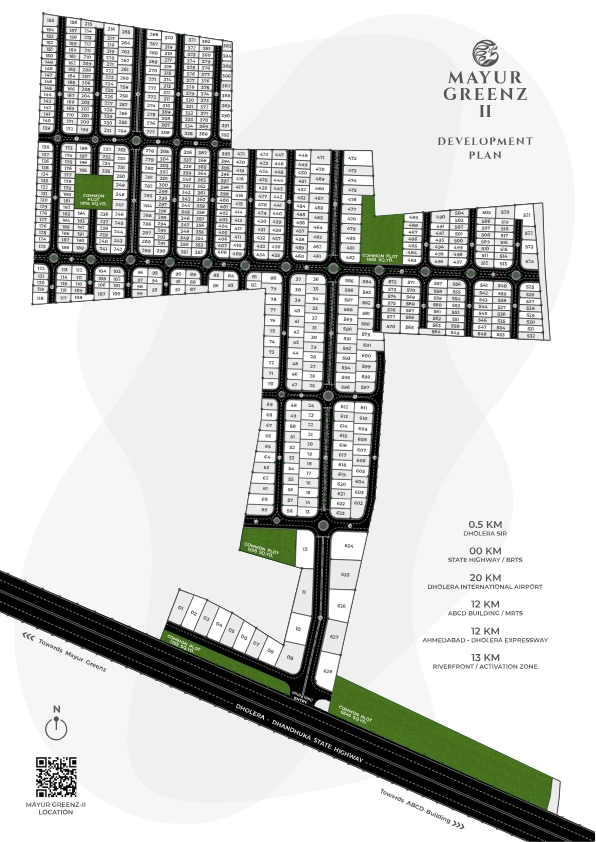 Largest & Luxurious residential land project launch, extended phase of Mayur Greenz, crafted exclusively for futuristic smart city region by Mirrikh Infratech, Dholera’s Leading Land Developer. This 76 Bigha development offers a sprawling clubhouse with a lawn spread in +2000 sq.yd.